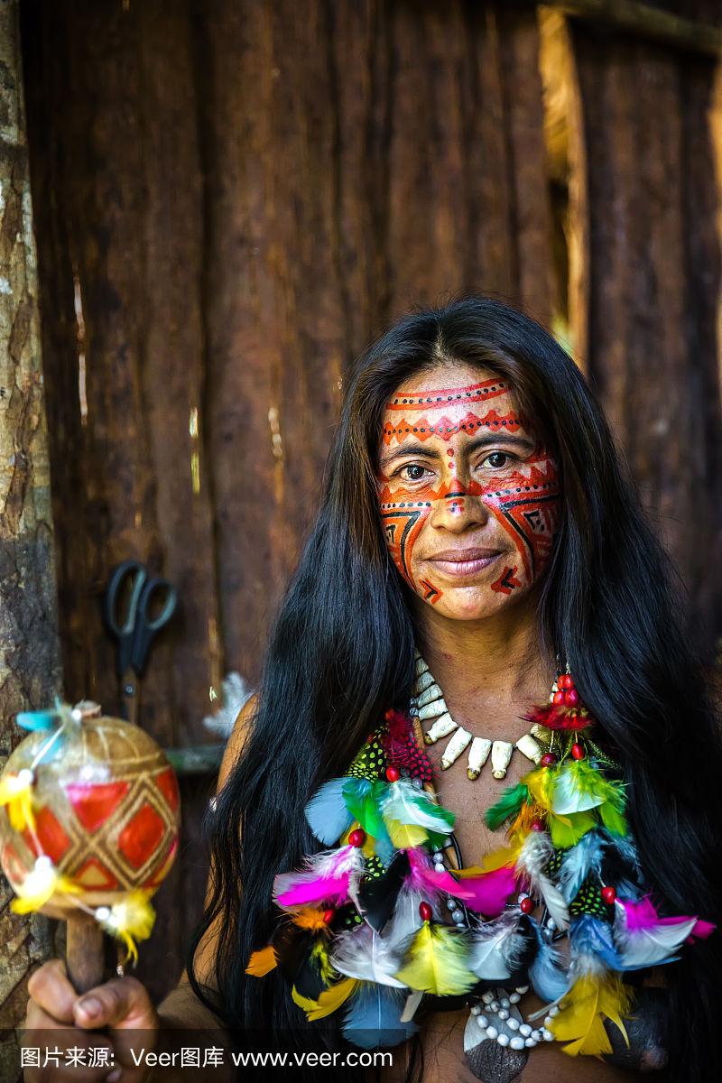 一个巴西印第安人在巴西亚马逊的肖像