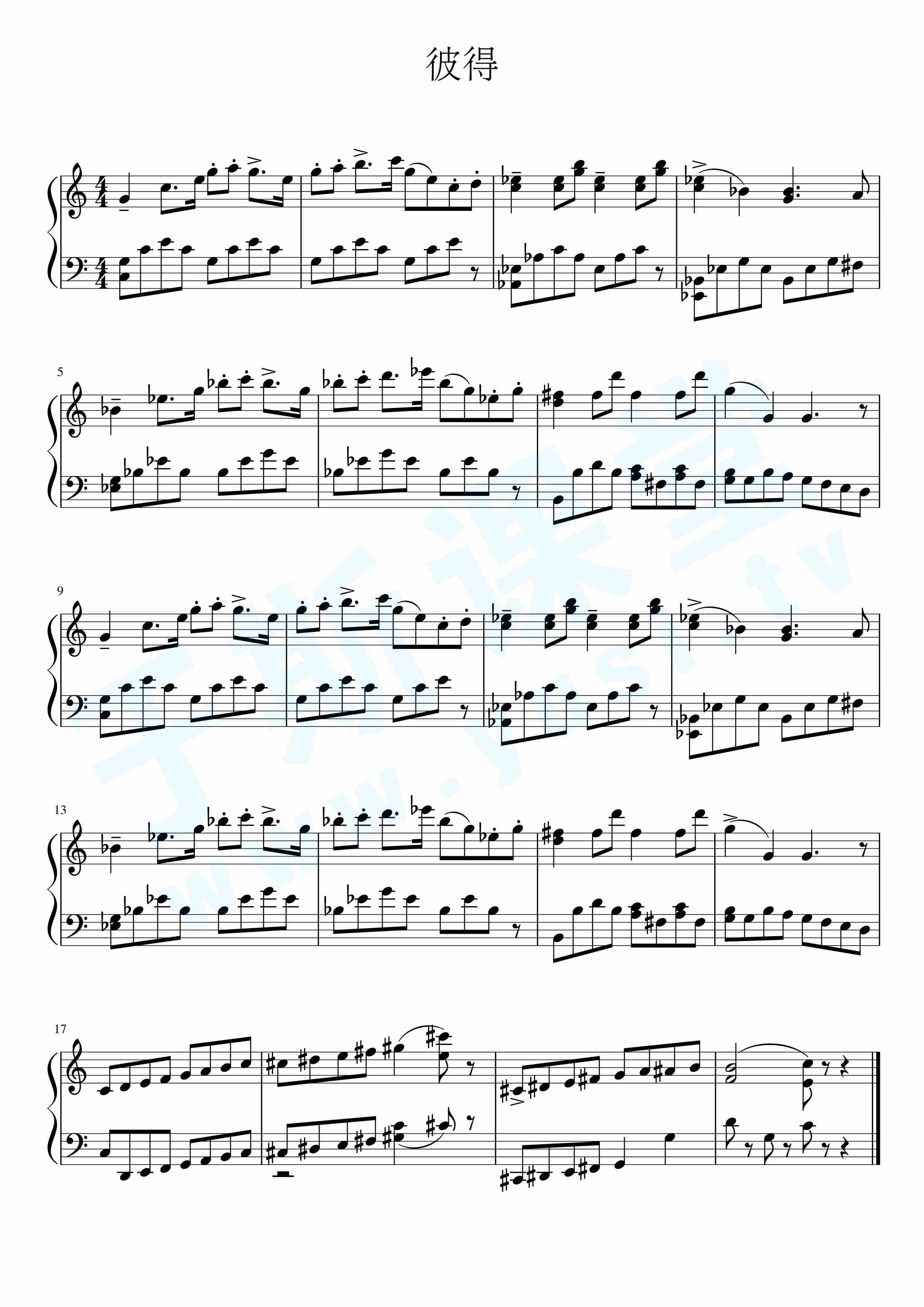 彼得(彼得与狼)钢琴曲谱,于斯课堂精心出品.
