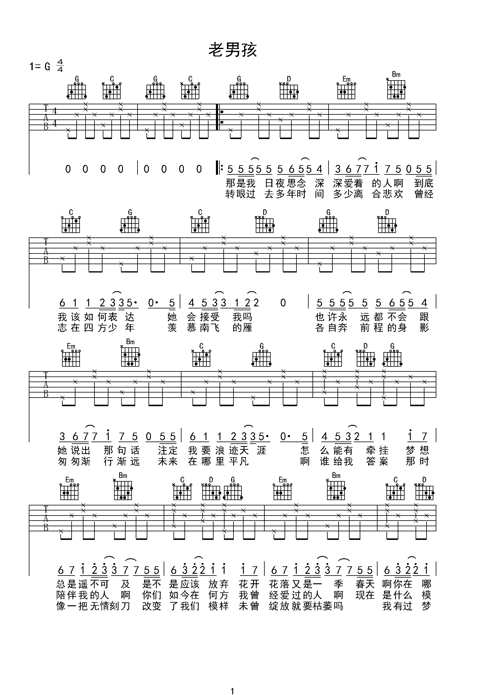 《老男孩》 吉他谱 筷子兄弟 图谱_第1页