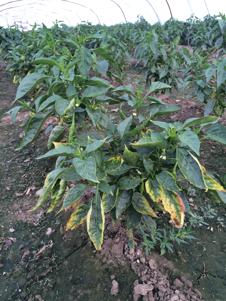 请问各位专家,我家这个辣椒下面一直黄叶是怎么回事?需要用些什么药