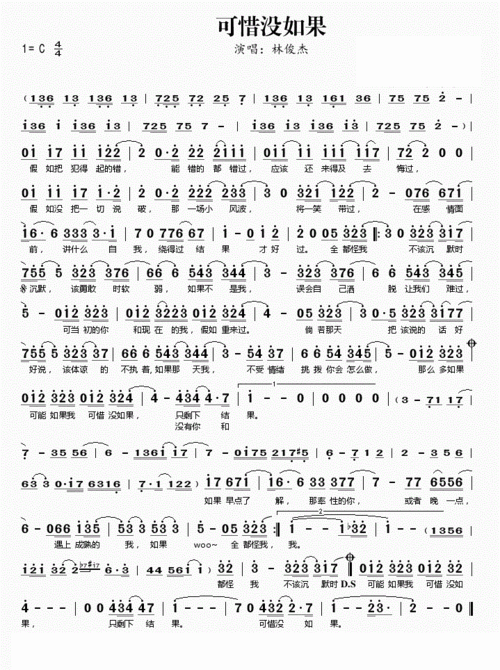 林俊杰可惜没如果简谱可惜没如果歌词