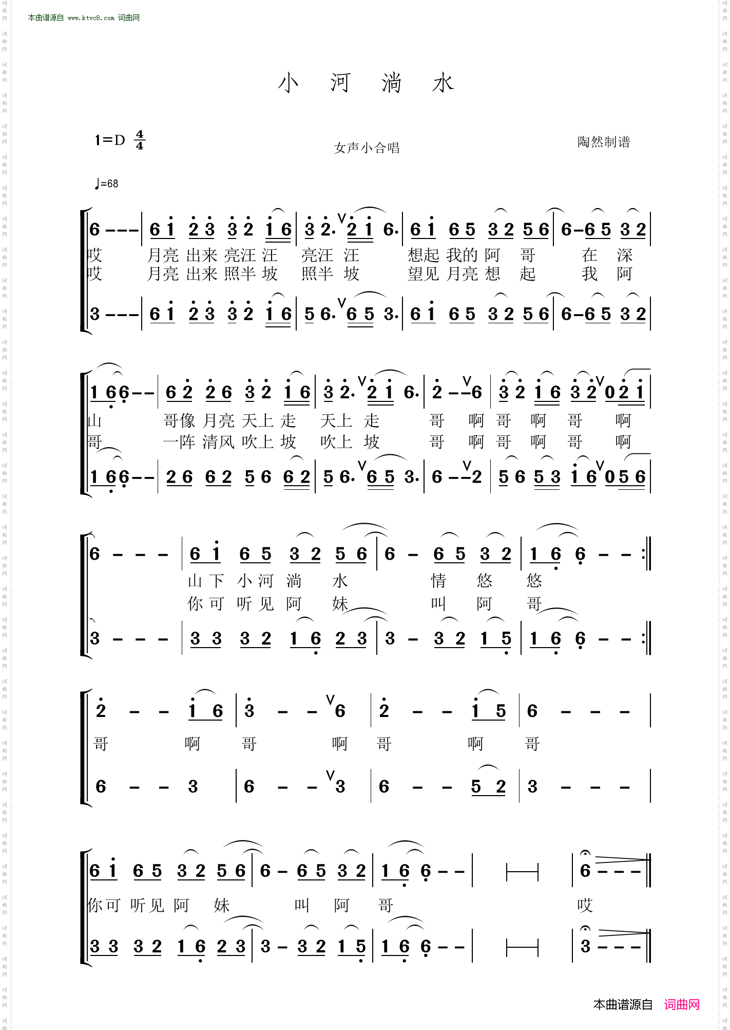 小河淌水_简谱_搜谱网