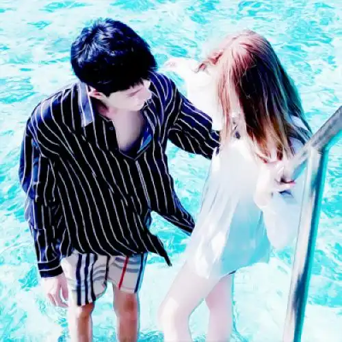情侣头像真人版双人一左一右全部是在海边的写真