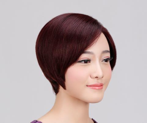 新款假发女短发波波头圆脸整顶头套帅气短碎发气质刘海发套|黑茶色28