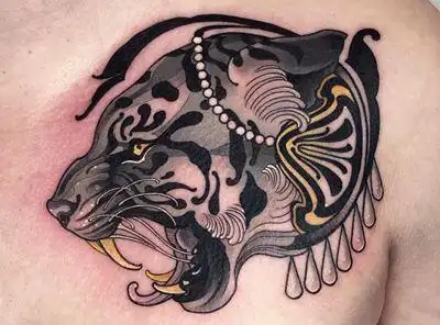 男生前胸经典霸气的下山虎纹身图片彩绘纹身下山虎纹身胸部纹身