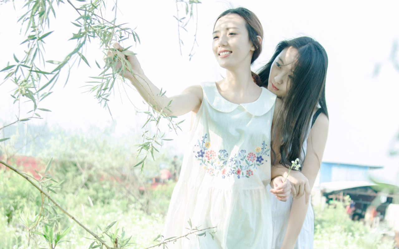 闺蜜小清新室外写真高清桌面壁纸图片下载