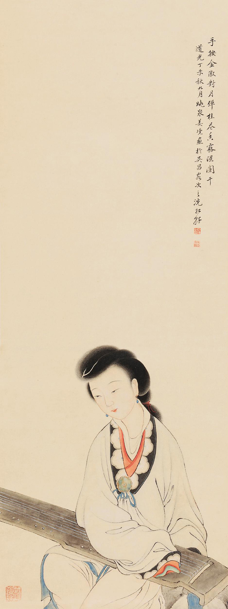 4466 抚琴仕女 立轴 设色纸本