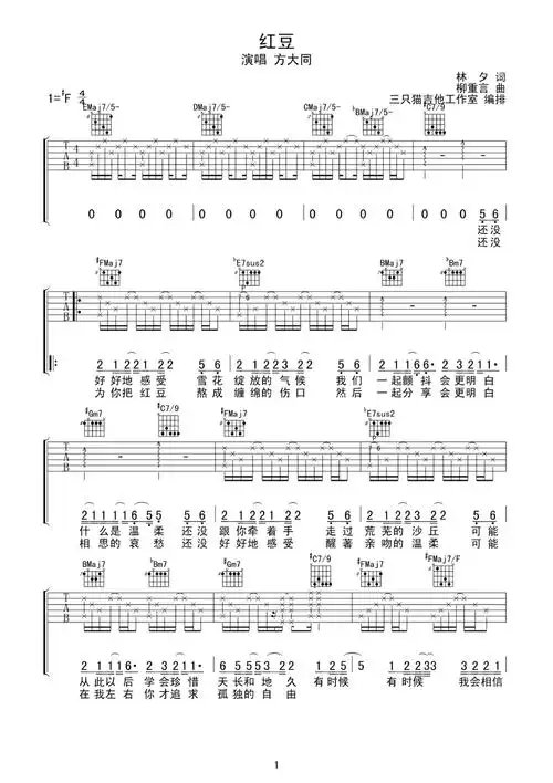 方大同 红豆吉他谱 方大同 方大同 红豆吉他谱简单版-方大同 红豆吉他