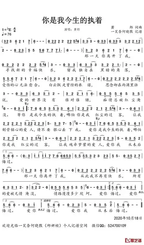 你是我今生的执着简谱-萧郎歌曲-一笑奈何晓斅曲谱-钢琴谱网