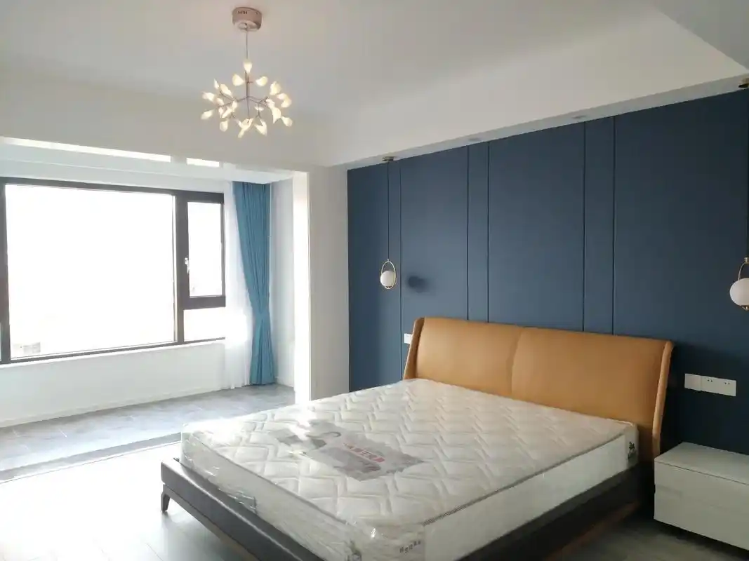 居家简约风,卧室蓝色系可参考墙漆颜色.