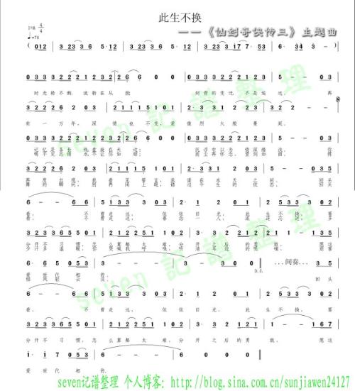 仙剑奇侠传3《此生不换》歌谱