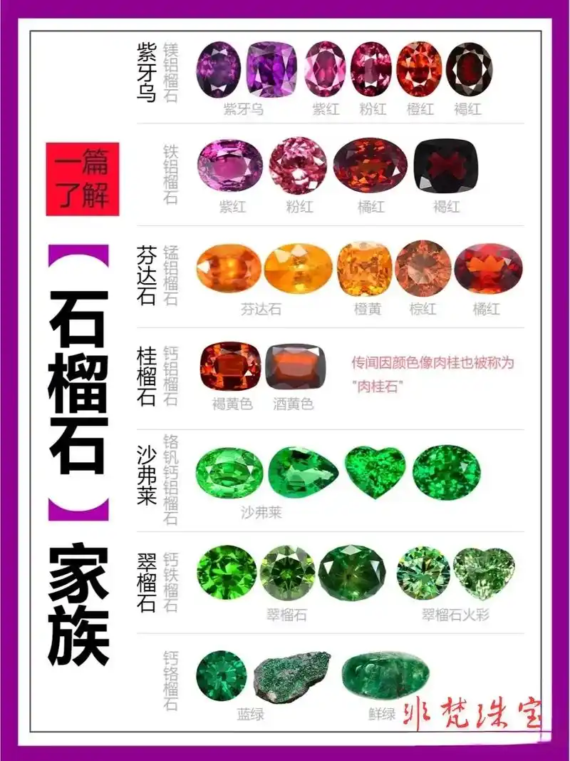 一图了解石榴石种类和颜色|新手建议收藏.彩色宝石高人气家族- - 抖音