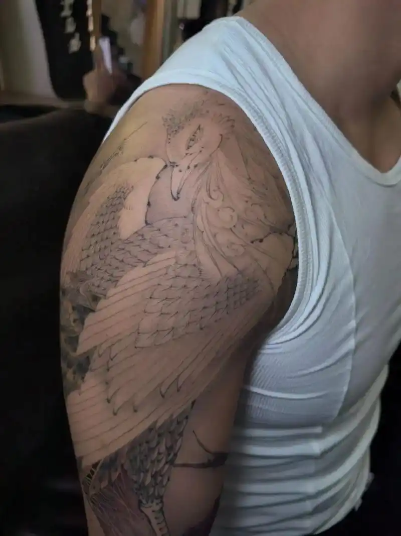 北海纹身大臂朱雀