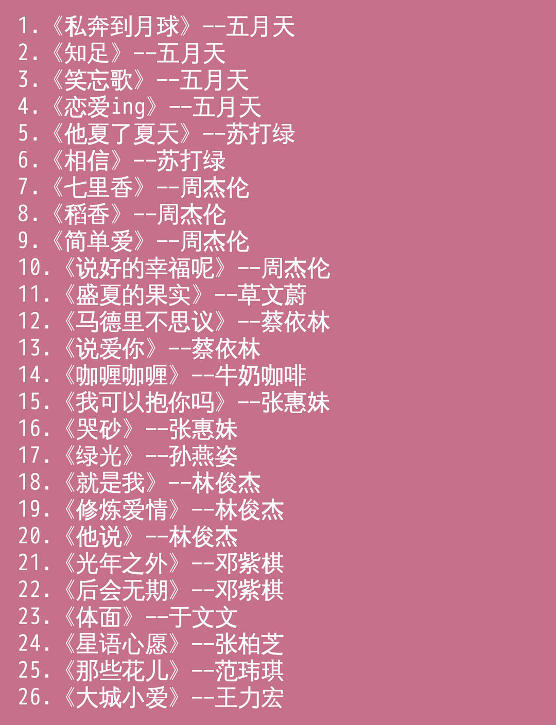 退回到点歌界面,画面左侧为当前目录菜单名称,右侧为歌曲名.