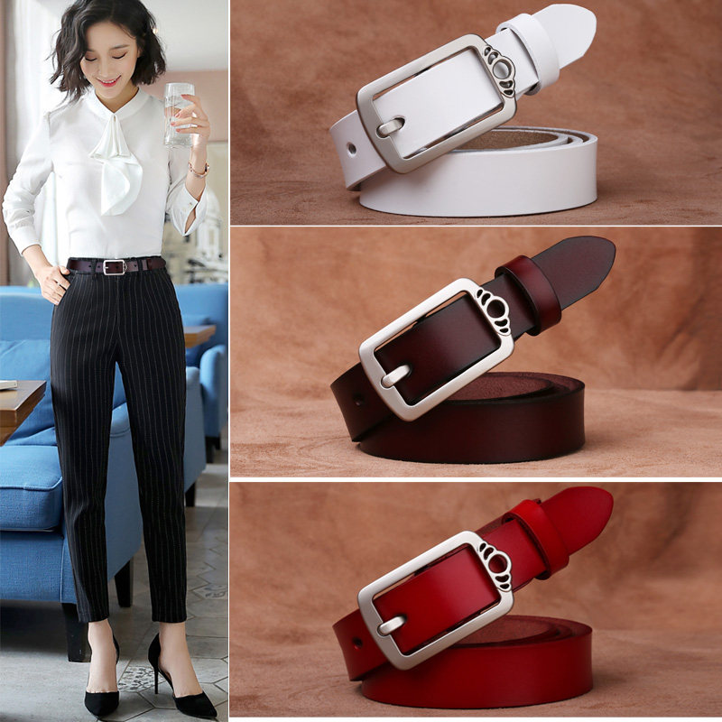 哥弟girdear女款红色时尚百搭牛皮皮带