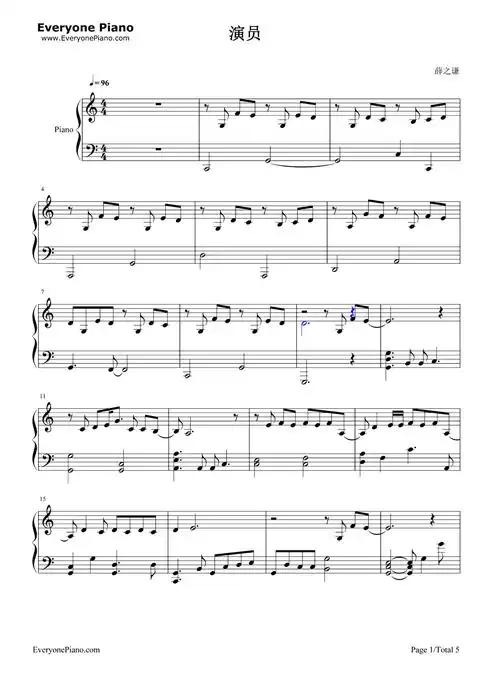 钢琴谱——《演员》薛之谦,李雨桐到底谁才是演员?
