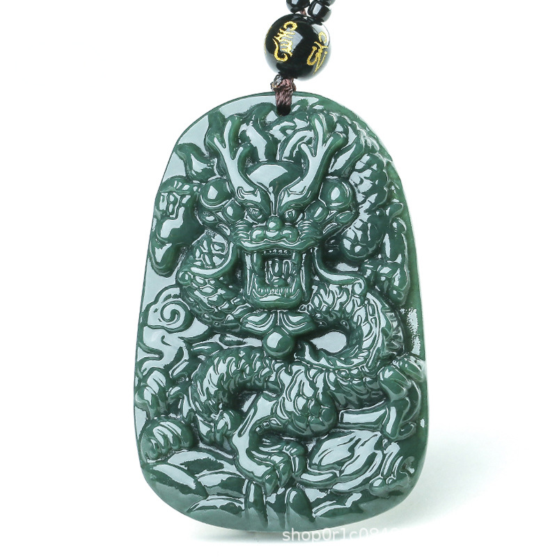 和田玉青玉生肖龙牌吊坠男款天然玉石玉器龙玉牌男士玉佩挂件挂坠