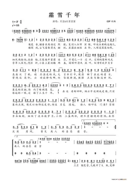霜雪千年简谱-双笙&封茗囧菌演唱-谱友蒹葭采采上传制作曲谱1
