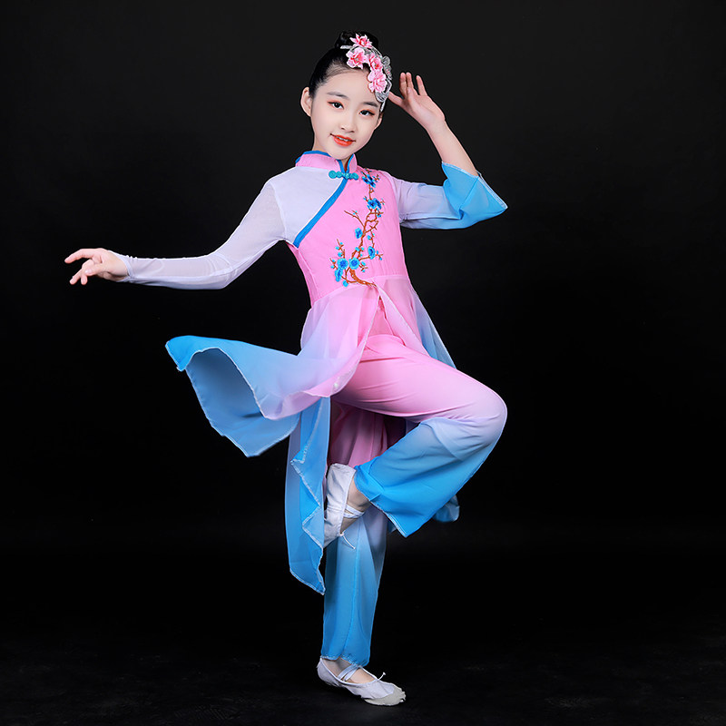 儿童古典舞演出服中国风扇子舞少儿身韵飘逸纱衣练功服女童舞蹈服