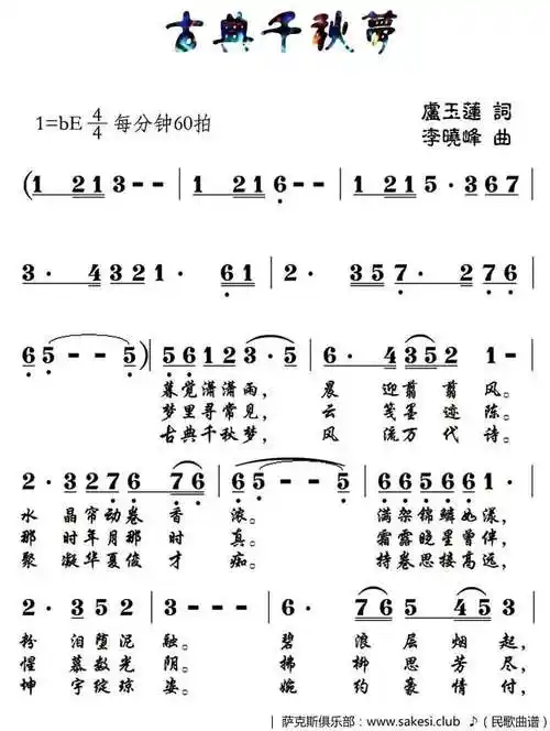 古典千秋梦-民歌古典千秋梦 古典千秋梦_民歌五线谱|民歌简谱|民歌