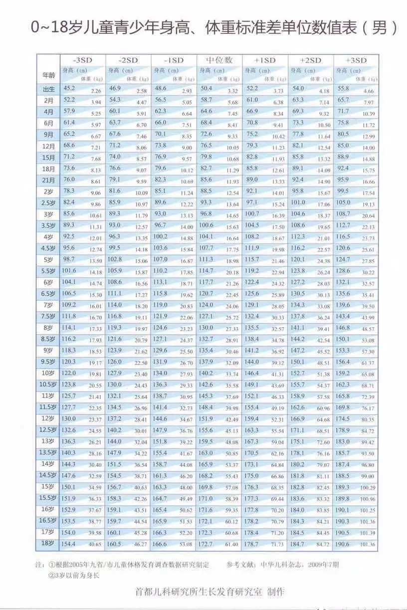 首都儿研所生长发育研究室的儿童身高体重表.《0-18岁儿童青 - 抖音
