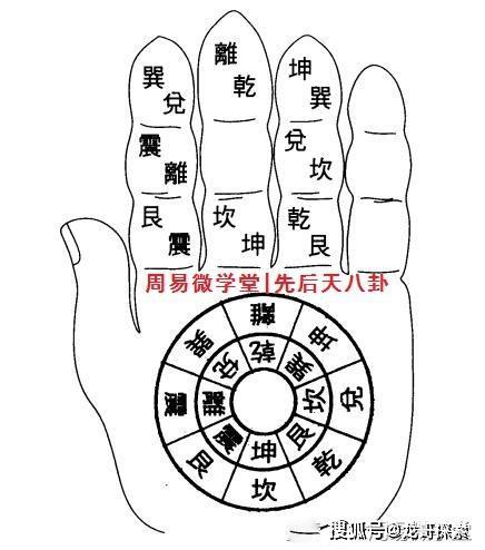 后天八卦掌诀图示先天八卦掌诀图示十二长生掌诀图示"掐指"是古人在占