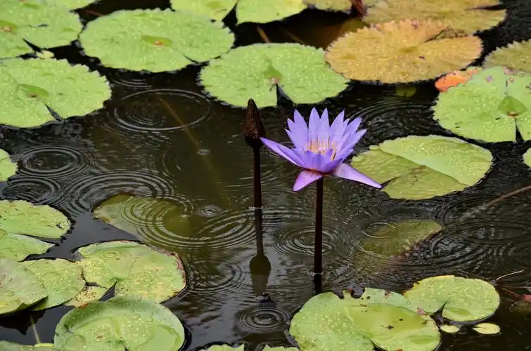 这些美丽的睡莲,仿佛在雨中尽情舞动,演绎出一场美丽的