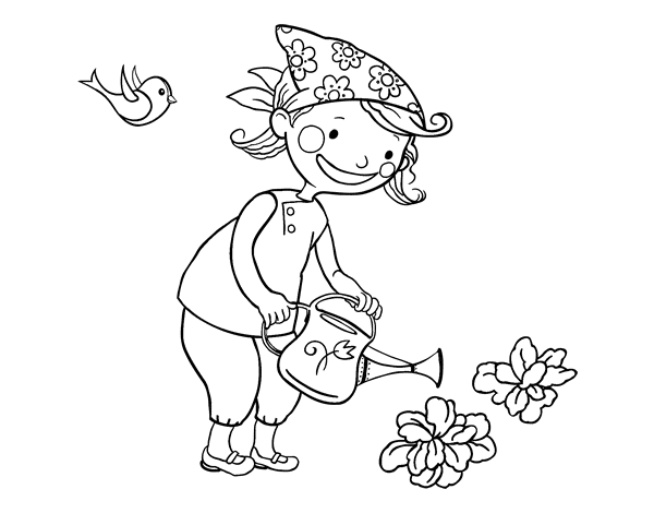 妈妈在给花浇水简笔画给土地里的树苗浇水教程简笔画浇花简笔画小女孩