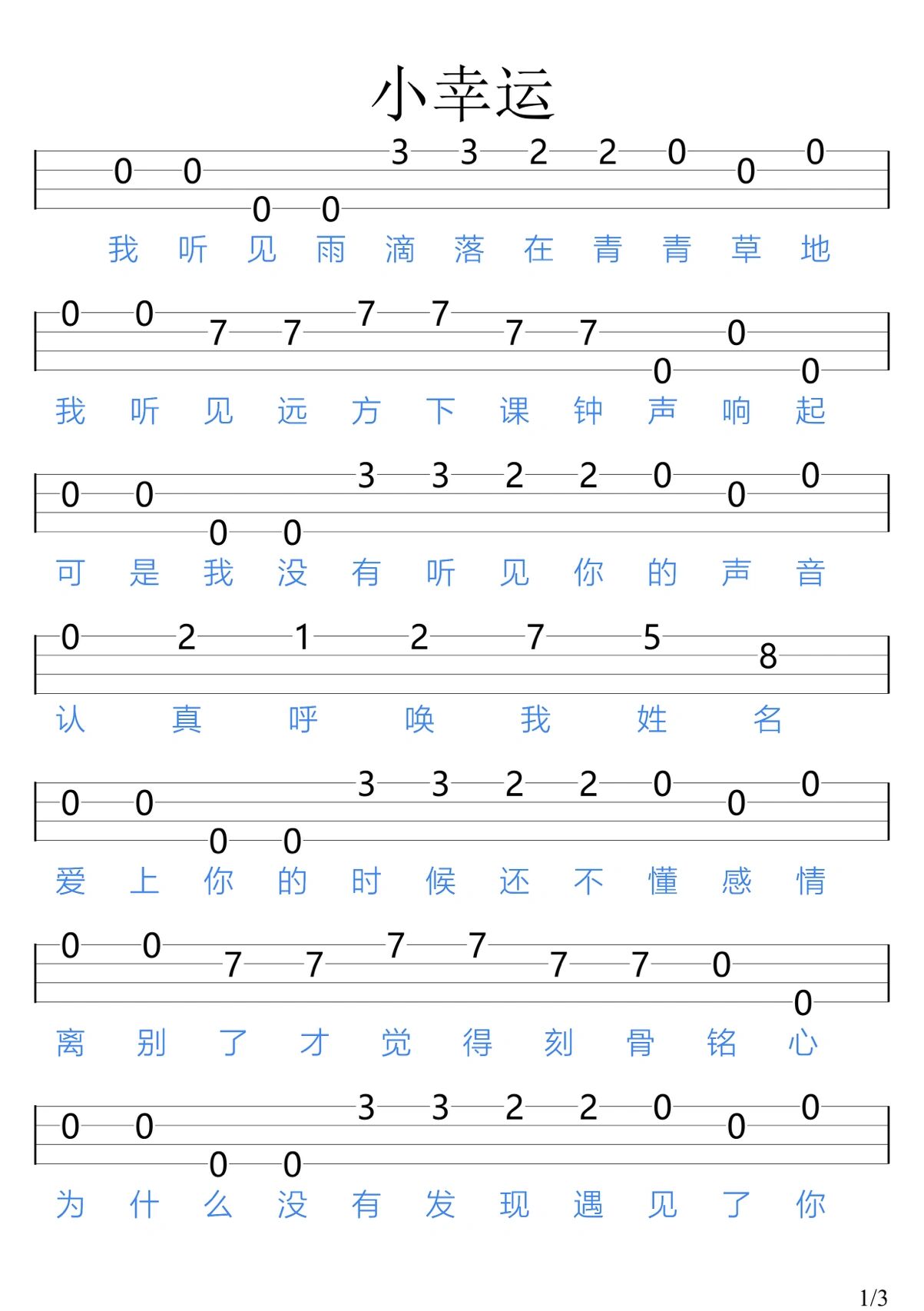 《小幸运》/尤克里里新手指弹谱 "学生时代的爱情能走到最后吗"