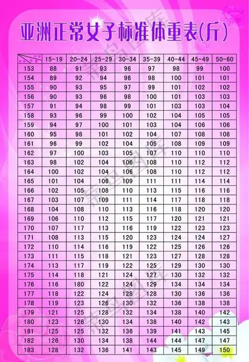 女性150-175cm标准体重对照表,你是灰姑娘还是女神呢?