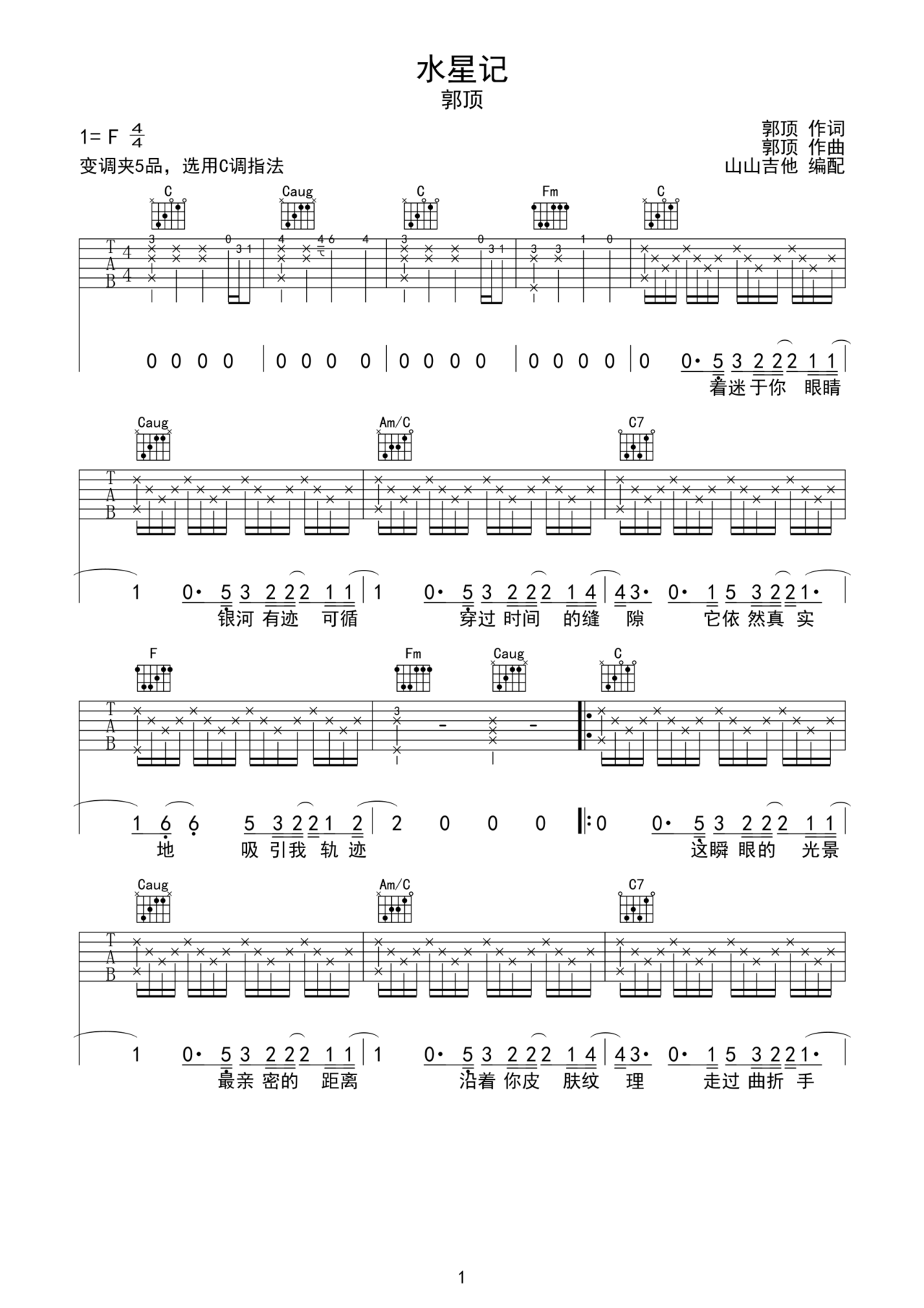 水星记吉他谱 郭顶 c调弹唱谱 高清图片谱