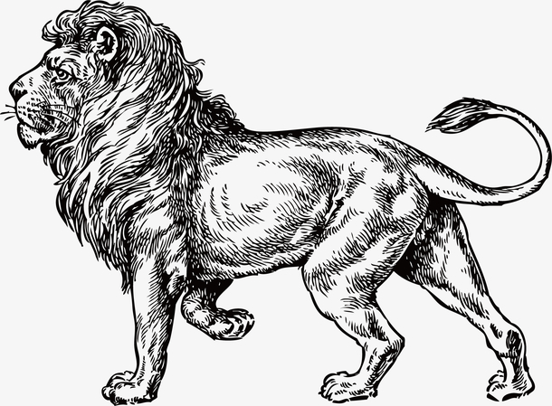 一只站立的雄狮手绘素描风格狮子猫科动物插画5934552免抠图片素材