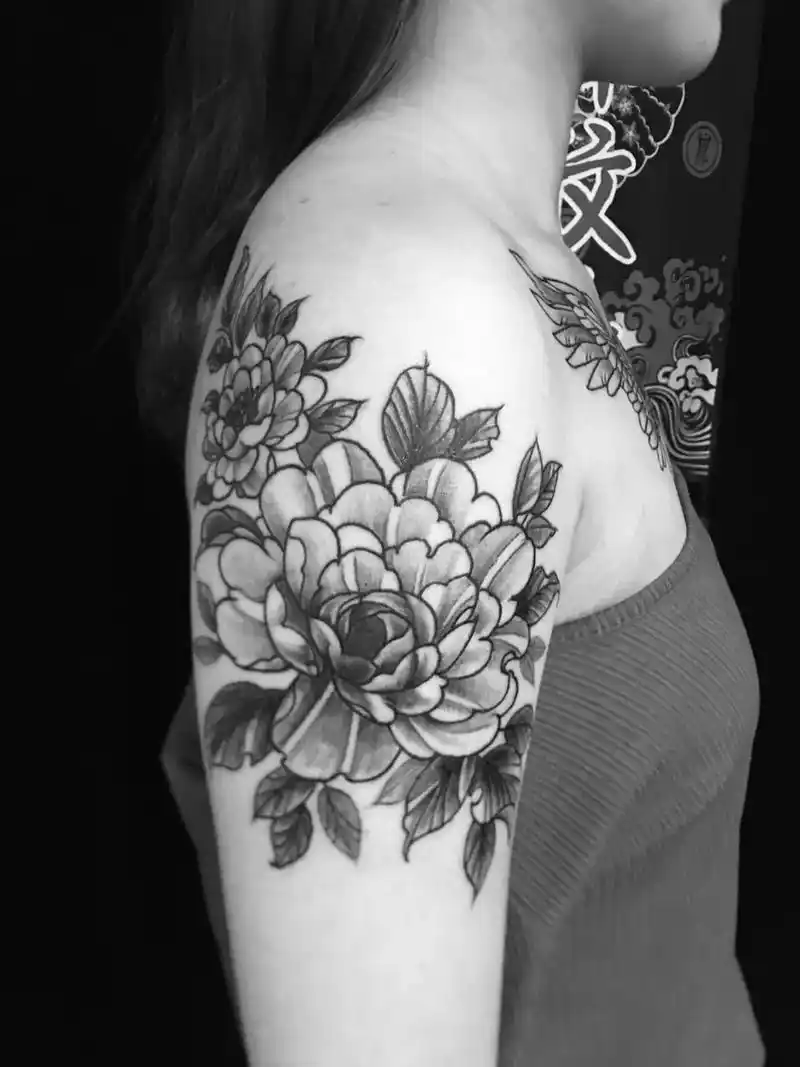 肩膀大臂唯美纹身 花唯美艺术纹身图案,女生大臂到肩膀的纹身图案