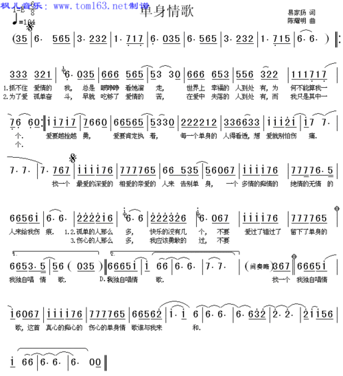 单身情歌_简谱_搜谱网