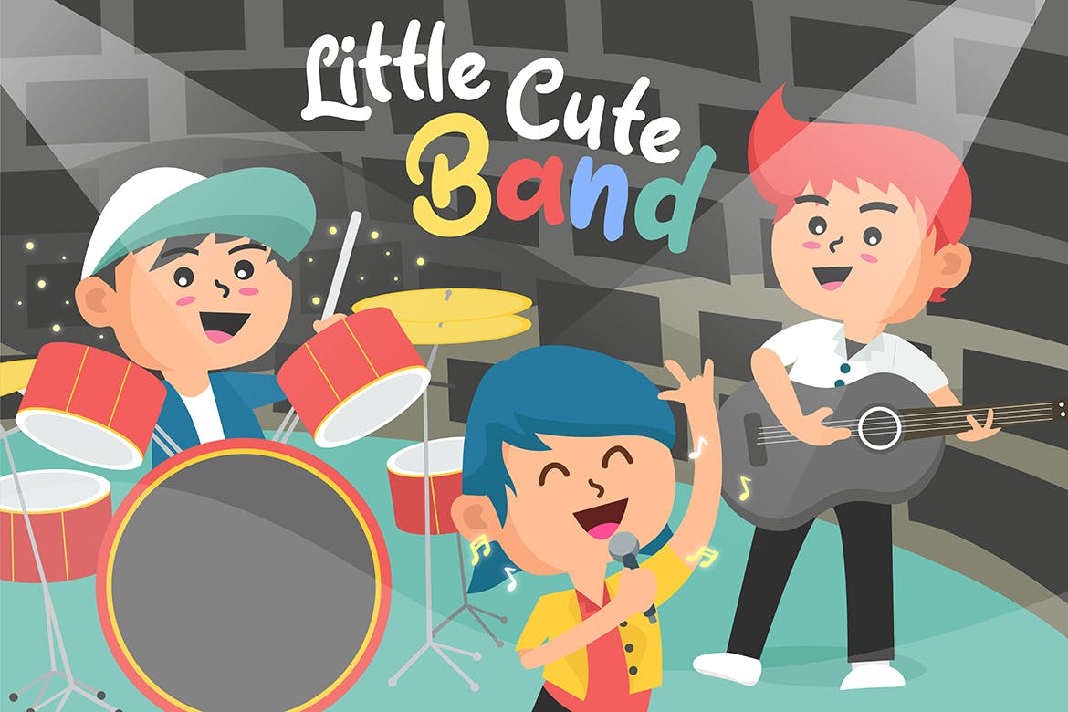 小可爱乐队演奏场景素材插画下载littlecutebandvectorillustration