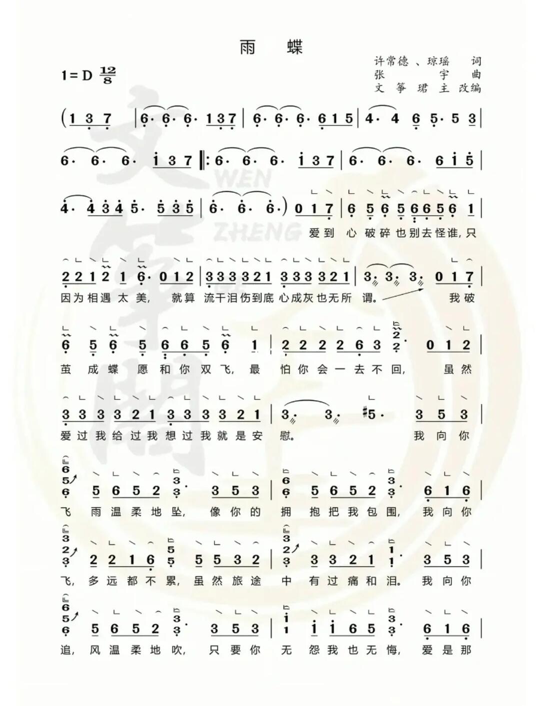 古筝流行曲谱分享雨蝶