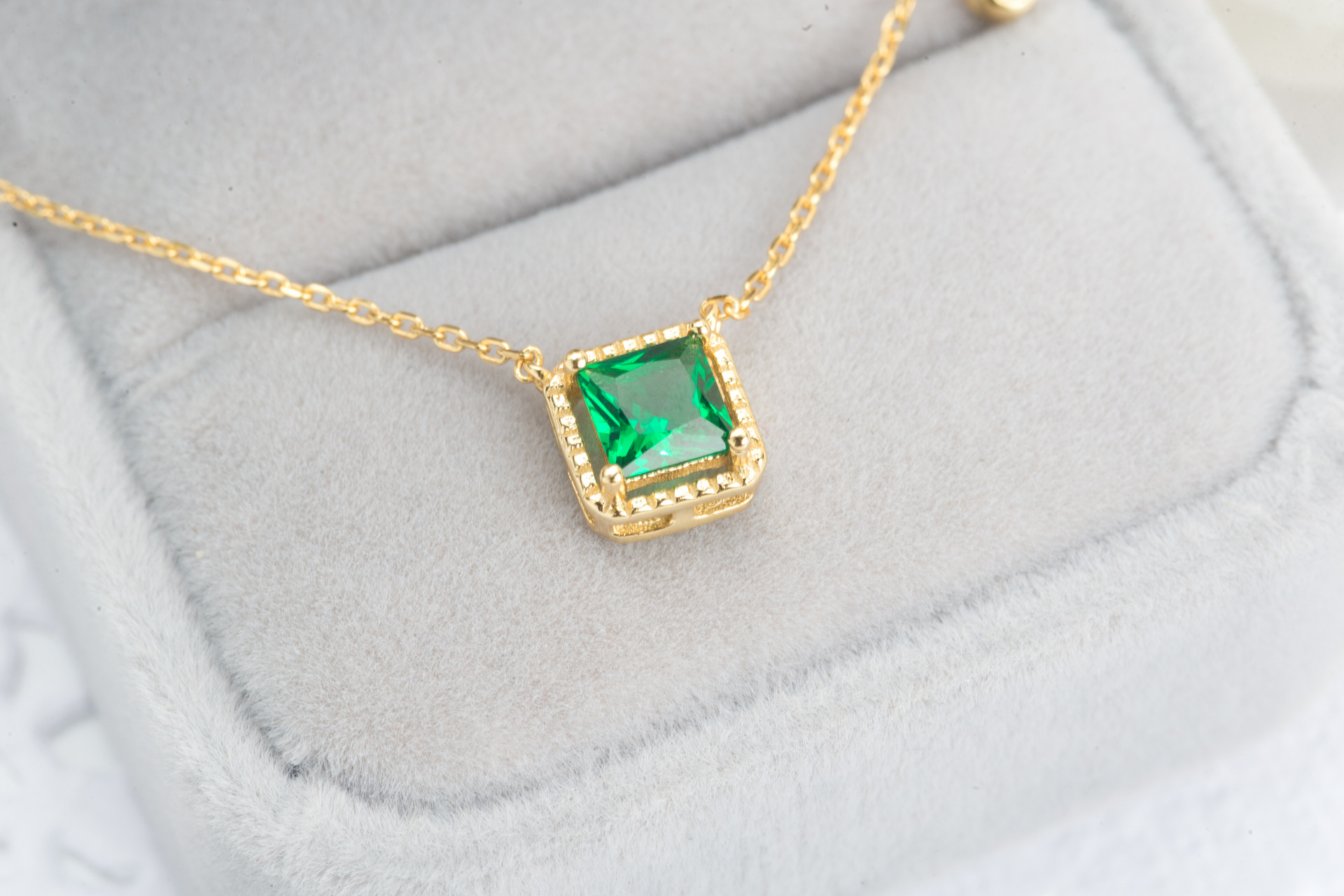 烨远 迷你绿钻吊坠项链复古气质锁骨链颈链女925纯银镀金80951