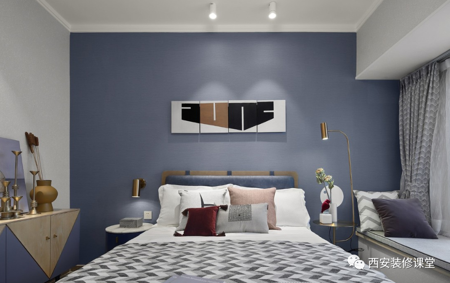 图文伙伴计划 12平的小小主卧,雾霾蓝的乳胶漆背景墙,衣柜 - 抖音