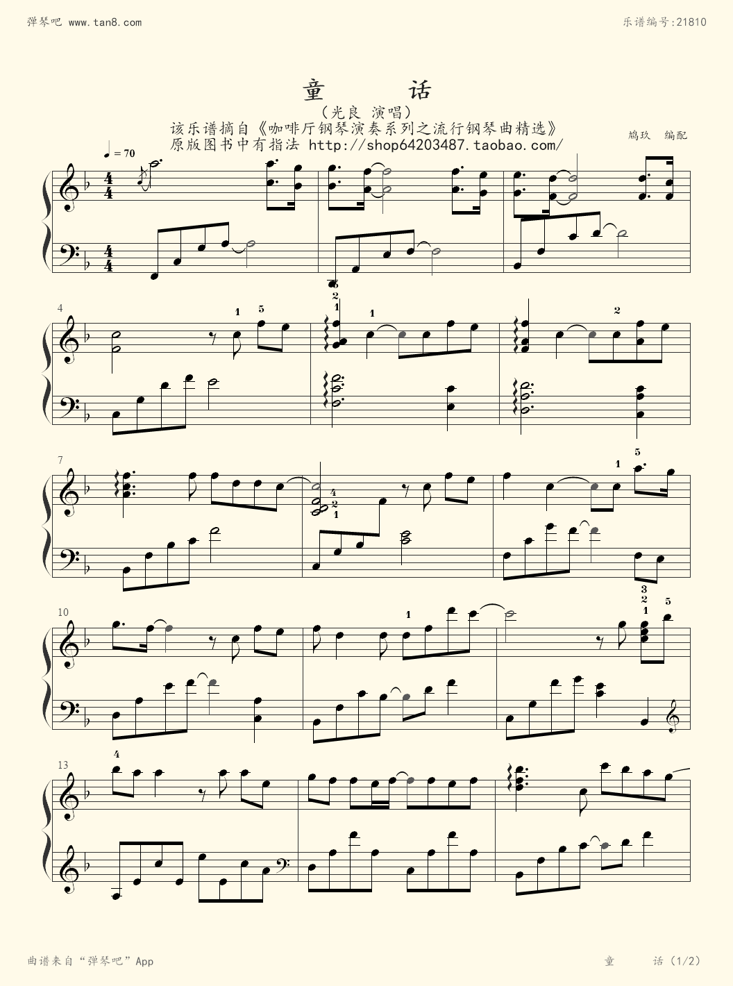 童话-光良五线谱预览1-钢琴谱文件(五线谱,双手简谱,数字谱,midi,pdf)