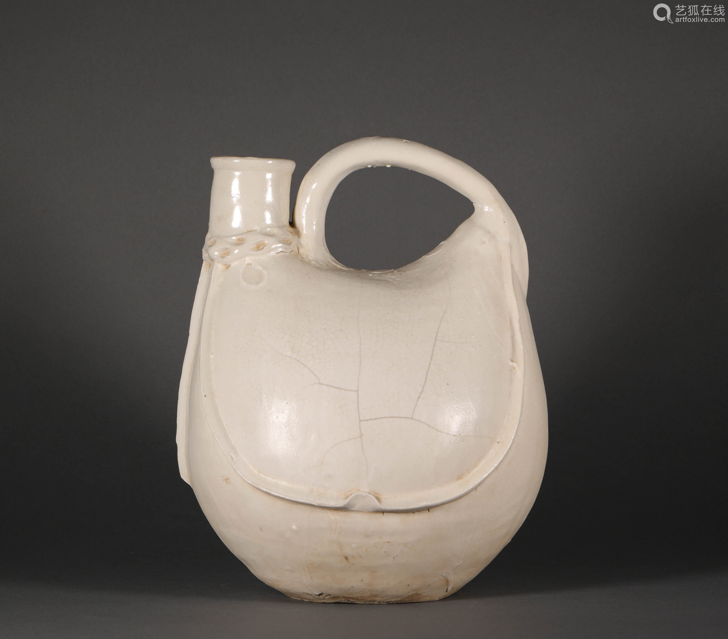 whiteglazedpotinshapeofleatherbagfromsong宋代白瓷皮囊壶