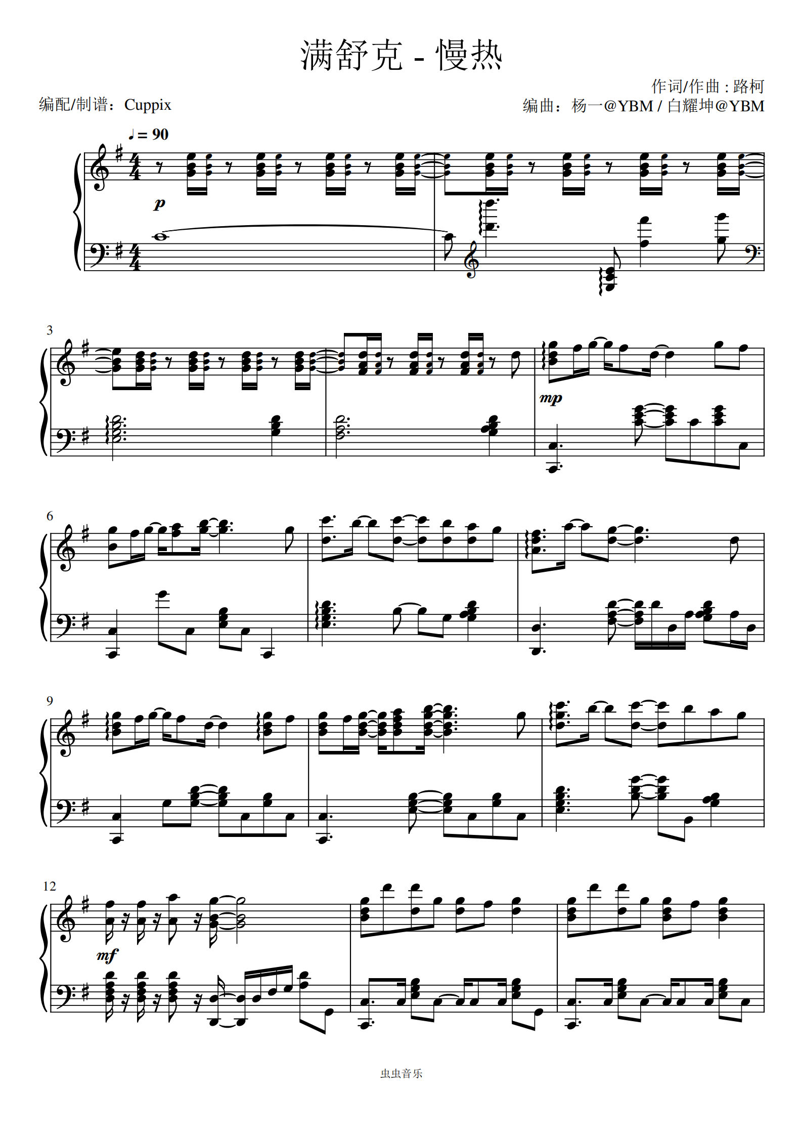 满舒克慢热原版g调弹唱高清图片吉他谱