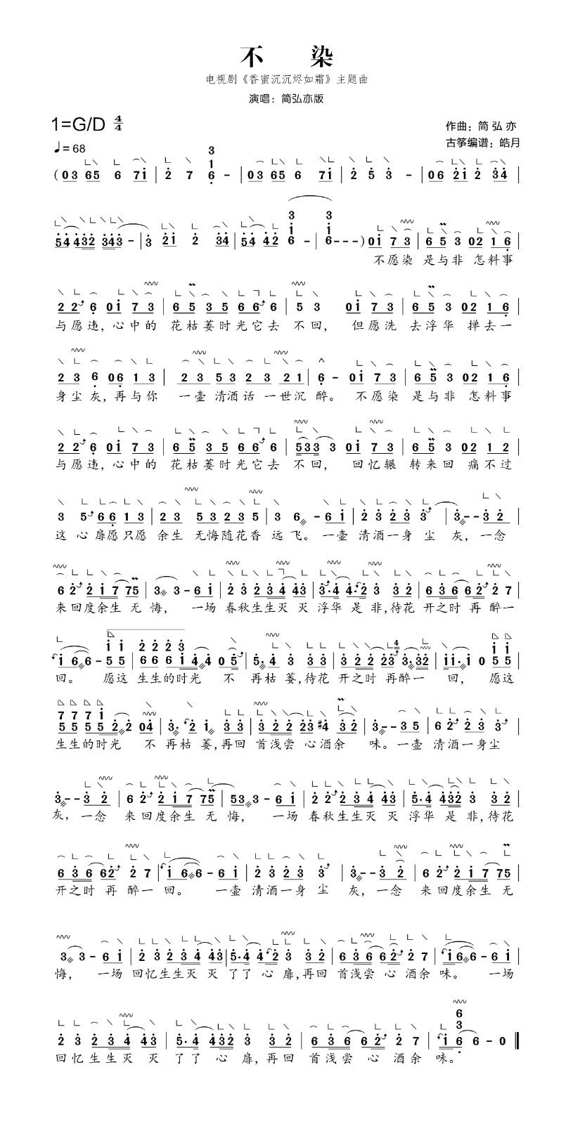 不染古筝谱