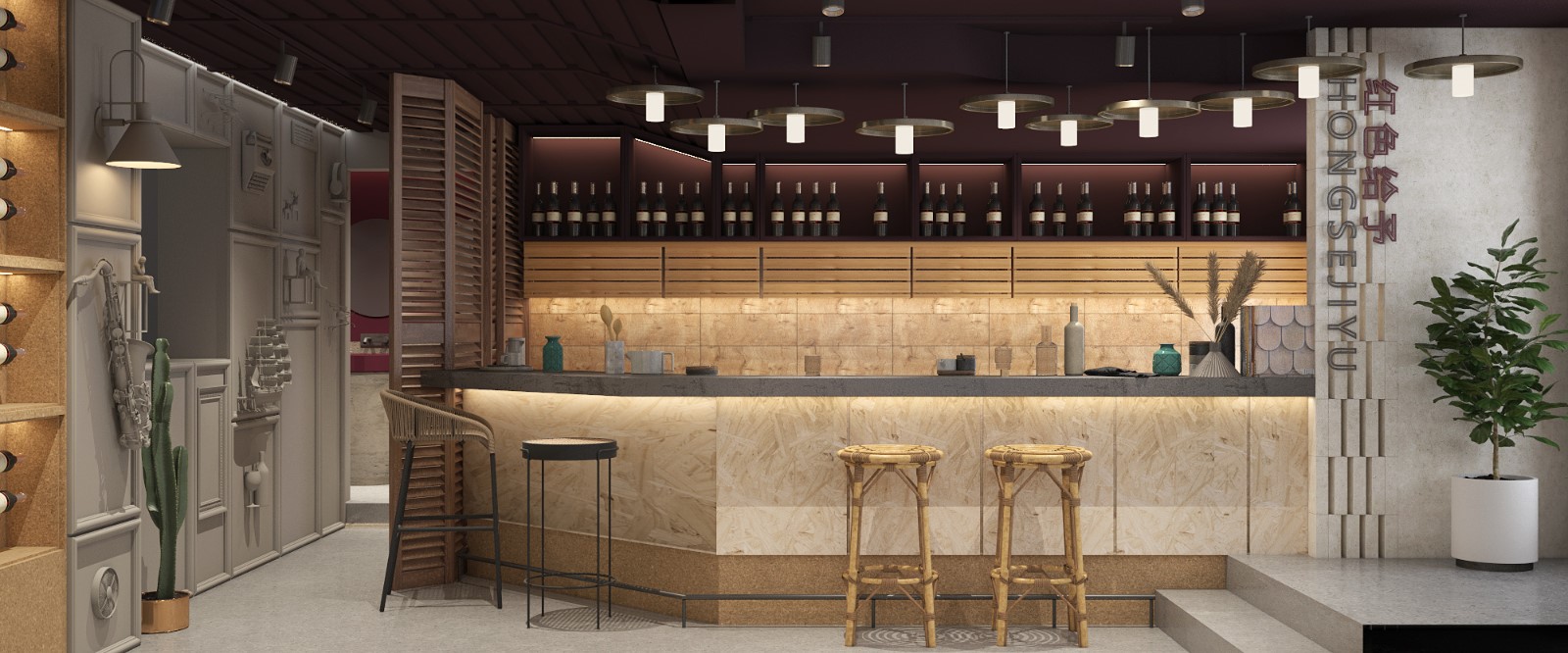 工装效果图设计表现! 餐厅 前台.- 渲染:黑白画影 设计: - 抖音