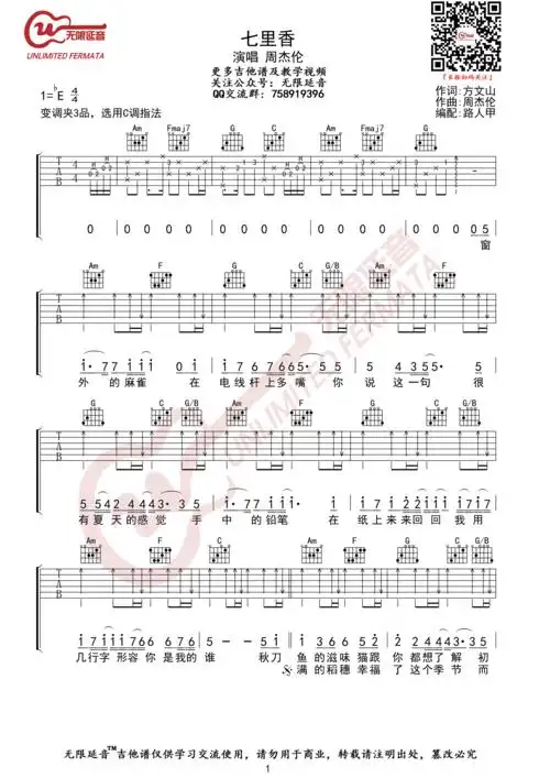 七里香吉他谱(图片谱,弹唱,扫弦)_周杰伦(jay chou)_七里香01.jpg