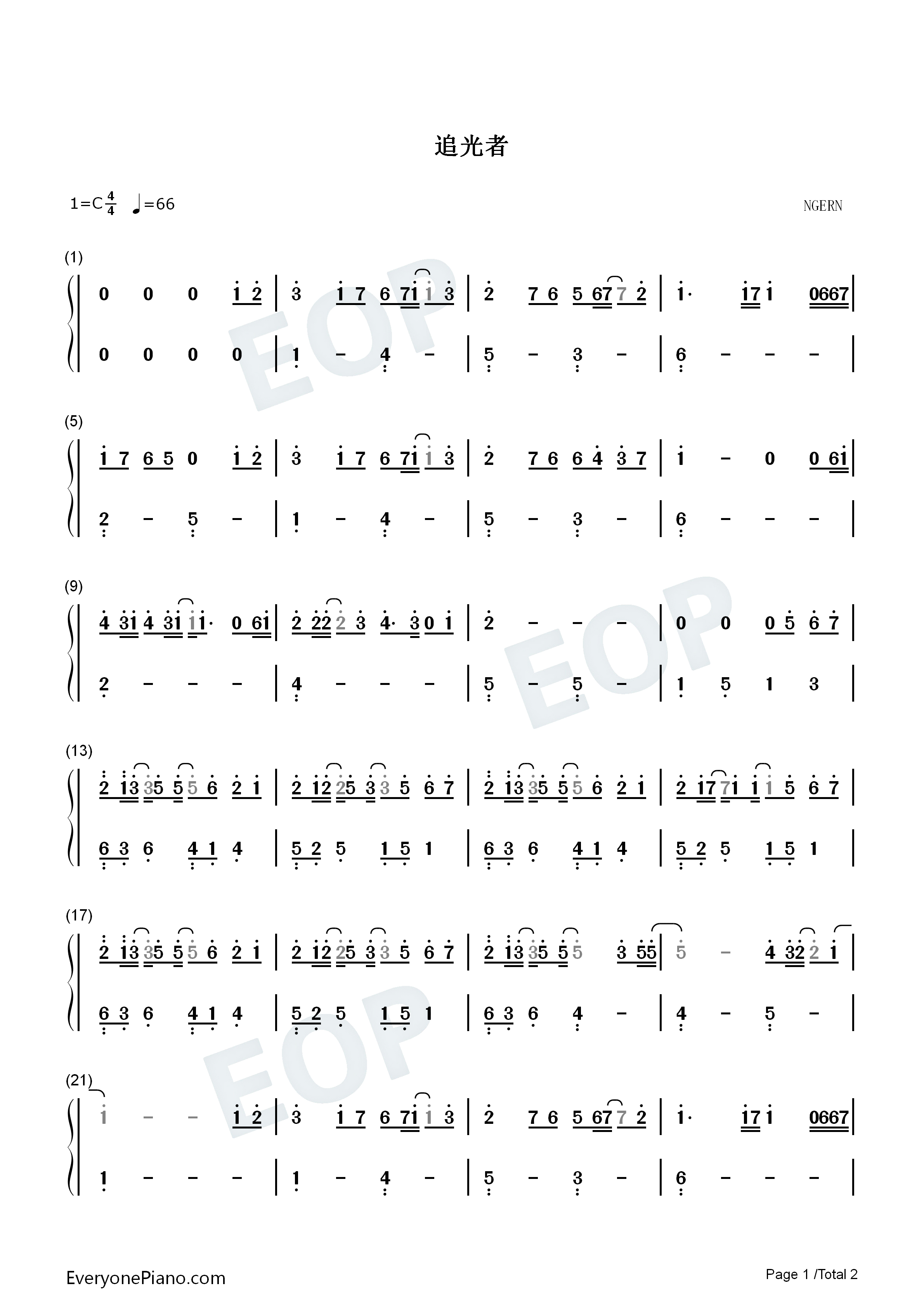 追光者(电视剧《夏至未至》插曲) 歌谱简谱网