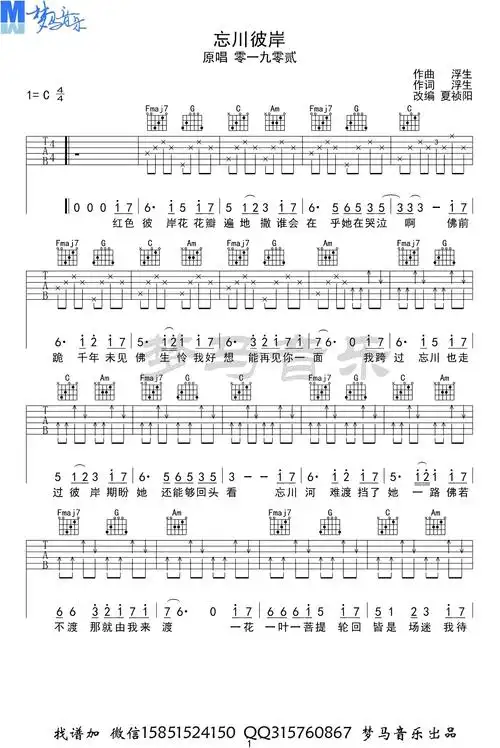 忘川彼岸c调六线吉他谱-虫虫吉他谱免费下载