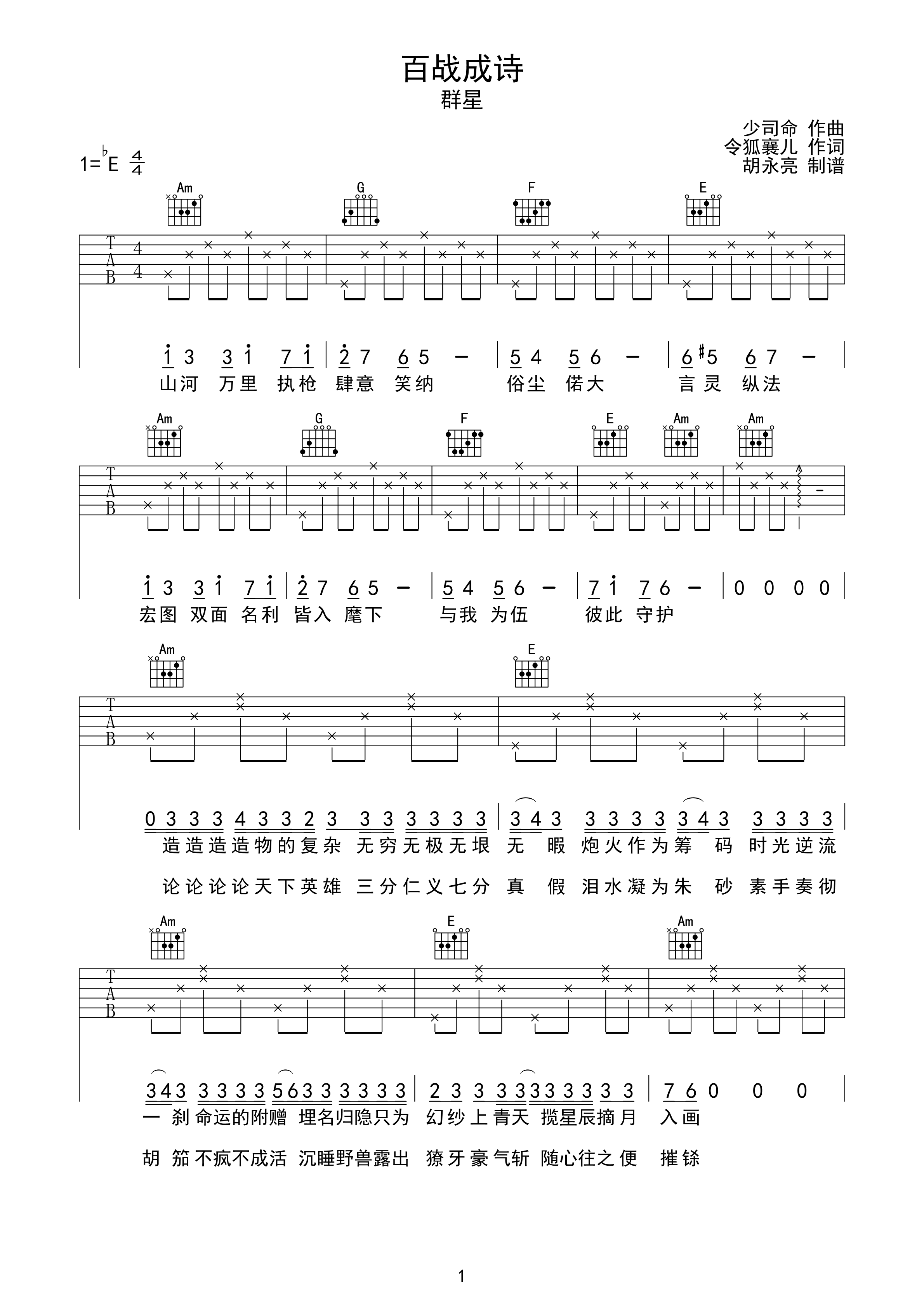 百战成诗吉他谱