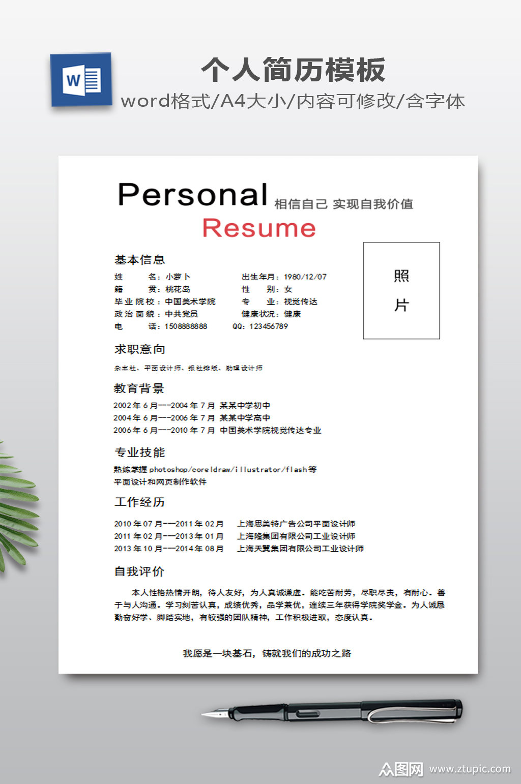 设计师个人简历求职简历word简历模板_个人简历_乐分享素材网_psd素材