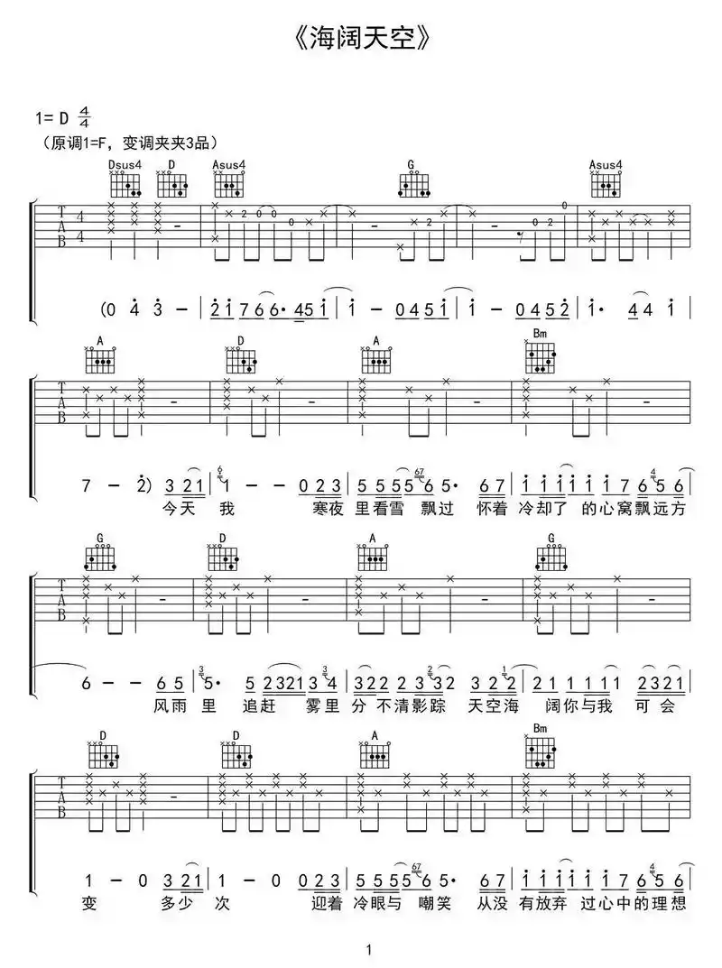 海阔天空吉他谱-1
