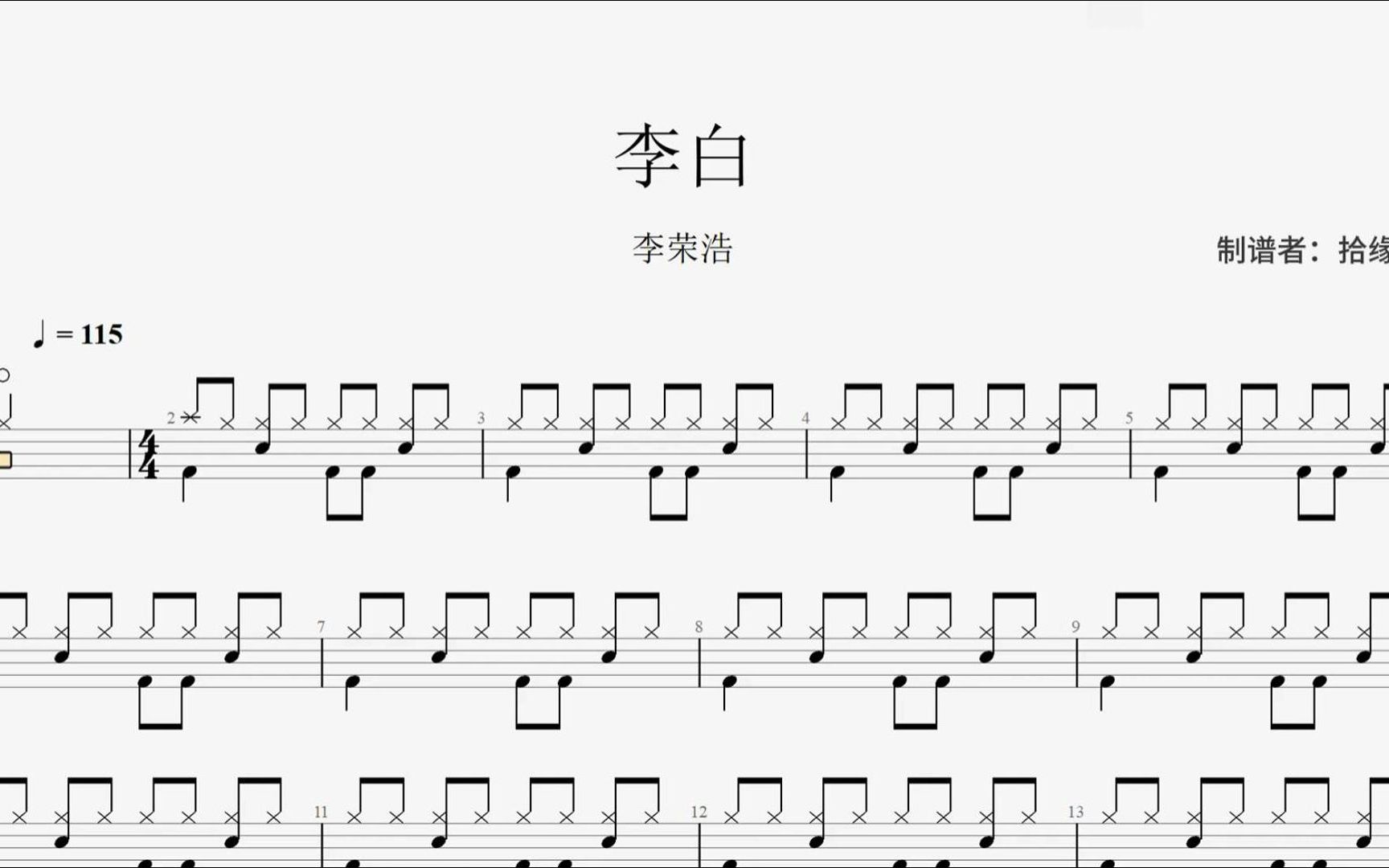 李白架子鼓谱 李荣浩爵士鼓曲谱